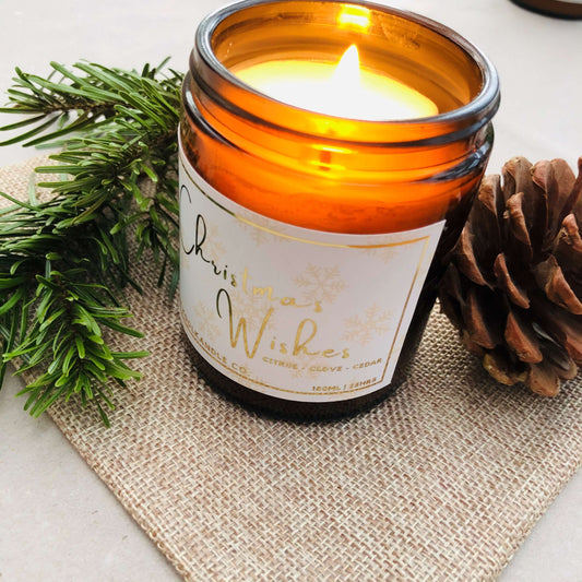 Christmas Wishes Candle - Aromatic soy wax and infused with the rich, warming scents of orange, clove, and cedar